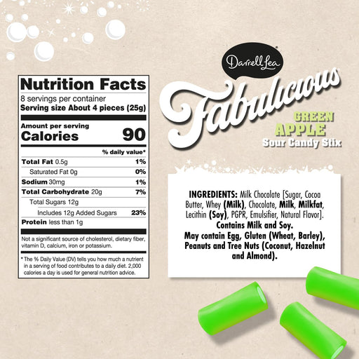 Darrell LeaDescription LIVE THE SWEET LIFE: Our Fabulicious Sour Candy Stix are soft and chewy green apple flavored tubes with a sour filling-guaranteed to ma...
