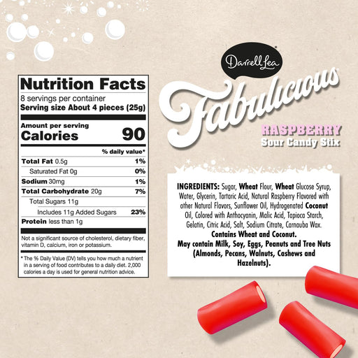 Darrell LeaDescription LIVE THE SWEET LIFE: Our Fabulicious Sour Candy Stix are soft and chewy raspberry flavored tubes with a sour filling-guaranteed to make...