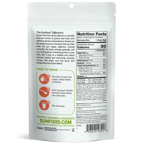 SunfoodDescriptionSimple Nutrition Green Blend is a carefully selected variety of greens and fruits with added probiotics and prebiotics. Greens are the p...