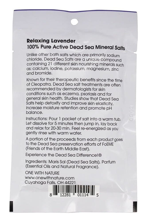 View full detailsOne With Nature Relaxing Lavender Dead Sea Mineral Salt Bath 2.5 Oz