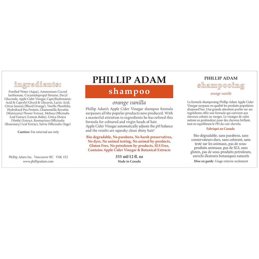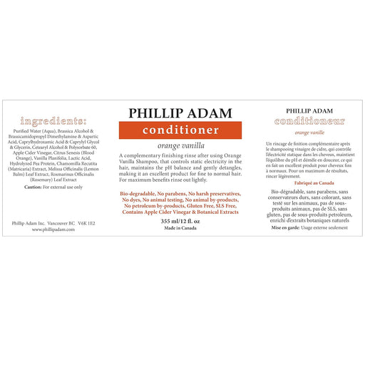 Phillip AdamDescription Deliciously smelling orange vanilla conditioner effectively nurtures all hair types, including colored hair. The apple cider vinegar fo...