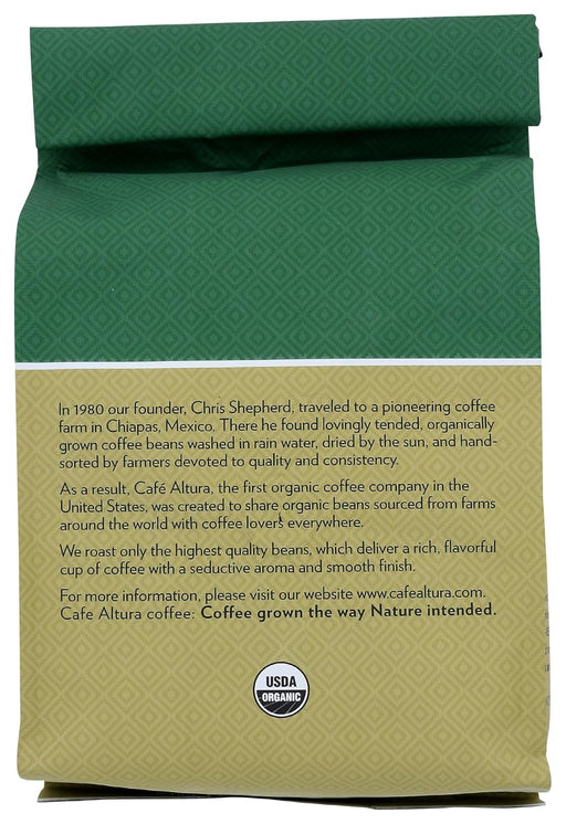 Cafe AlturaDescription Cafe Altura Italian Style Dark Roast Organic is the original organic coffee. This coffee is 100% Arabica shade grown, at altitudes abov...