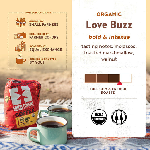 Equal ExchangeDescription Equal Exchange Authentic Fair Trade Small Farmer Coffee, Love Buzz is a natural ground coffee that adds an extra spark to your mornings...