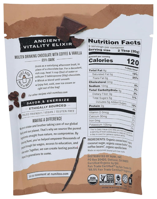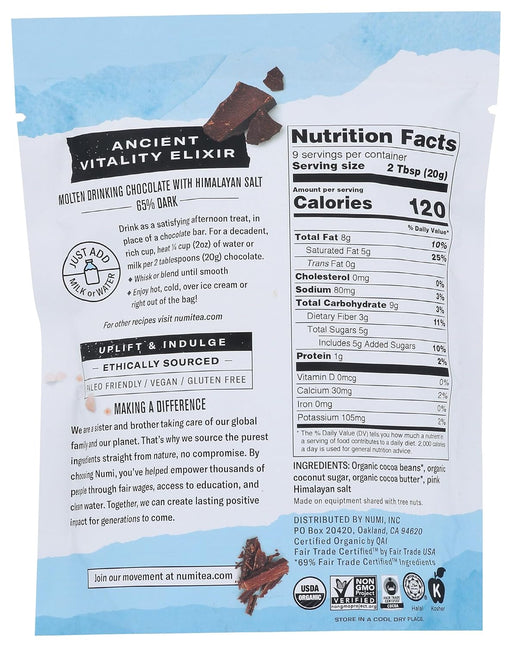 Numi TeaDescription Uplifting, indulgent, ethically sourced chocolate elixir made with 65% cacao. Drinking Chocolates are rich in cacao, a true superfood c...