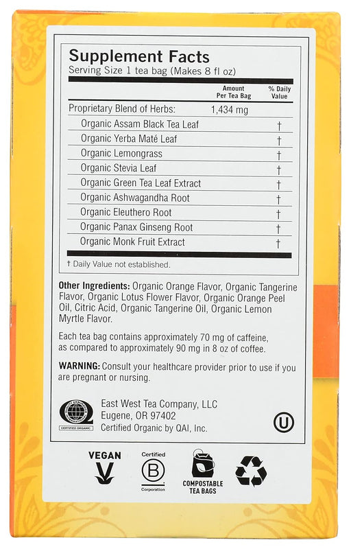 YogiDescription Yogi Sweet Tangerine Positive Energy is packaged in 16 tea bags, each of which will make an 8 fl. oz. cup of herbal tea. This beverage ...
