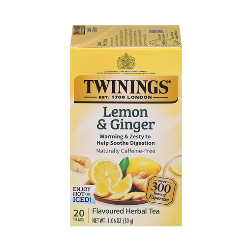 TwiningsDescription A comforting herbal tea made with spicy ginger and the tangy flavor of lemon. Individual tea bags sealed for freshness. Naturally caff...