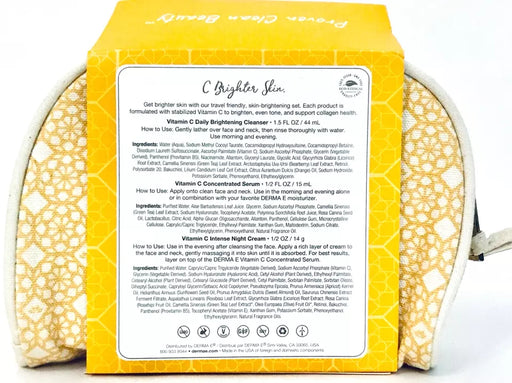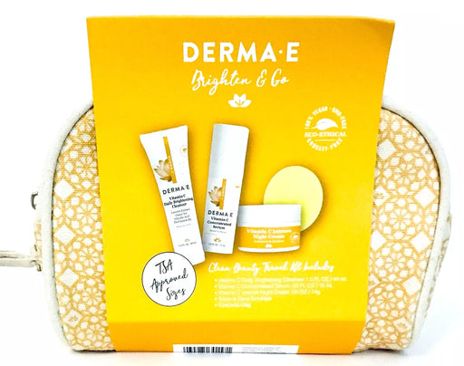 Derma EDescription Clean Beauty Travel Kit Includes:Derma E, Vitamin C Daily Brightening Cleanser 1.5 fl oz/44 mlDerma E, Vitamin C Concentrated Serum 1/2...