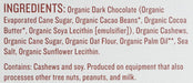 Organic Dark Chocolate (Organic Evaporated Cane Sugar, Organic Cacao Beans*, Organic Cocoa Butter*, Organic Soya Lecithin [Emulsifier]), Organic Cashews, Organic Cane Sugar, Organic Oat Flour, Organic Palm Oil**, Sea Salt, Organic Sunflower Lecithin.