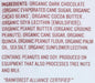 Organic Dark Chocolate (Organic Evaporated Cane Sugar, Organic Cacao Beans', Organic Cocoa Butter, Organic Soya Lecithin [Emulsifier]) , Organic Peanut Butter (Organic Ground Peanuts), Organic Cane Sugar, Organic Quinoa, Organic Peanut Flour, Organic Palm Oil Sea Salt, Organic Sunflower Lecithin.