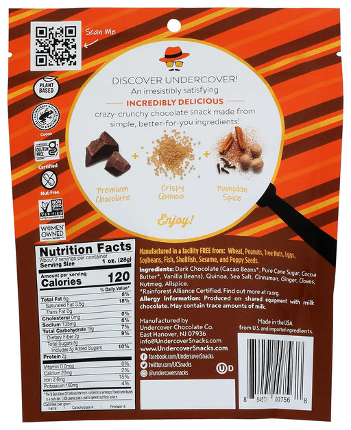 View full detailsUndercover Chocolate Quinoa Crisps Dark Chocolate & Pumpkin Spice 2 Oz