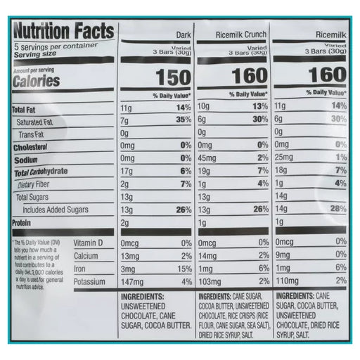 Enjoy LifeDescription 15 ct. Individually wrapped chocolate candy bars. School safe. A holiday treat everyone can celebrate. Ingredients Dark: Unsweetened ...