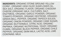 Organic Stone Ground Yellow Corn, Organic High Oleic Sunflower Oil, Sea Salt, Organic Flavor, Organic Cheddar Cheese (Organic Milk, Cultures, Salt, Enzymes), Organic Garlic Powder, Organic Tomato Powder, Organic Dextrose, Organic Green Bell Pepper, Organic Tapioca Solids, Organic Onion Powder, Organic Cane Sugar, Organic Buttermilk, Citric Acid, Organic Paprika, Organic Nutritional Yeast, Organic Cumin, Organic Black Pepper, Organic Chile Pepper, Organic Skim Milk, Lactic Acid, Lime
