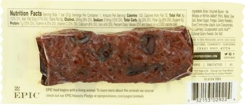 EpicDescription The epic bar is a 100% grass fed animal based protein bar designed as nature intended. Paleo friendly, gluten free, and low in sugar, w...