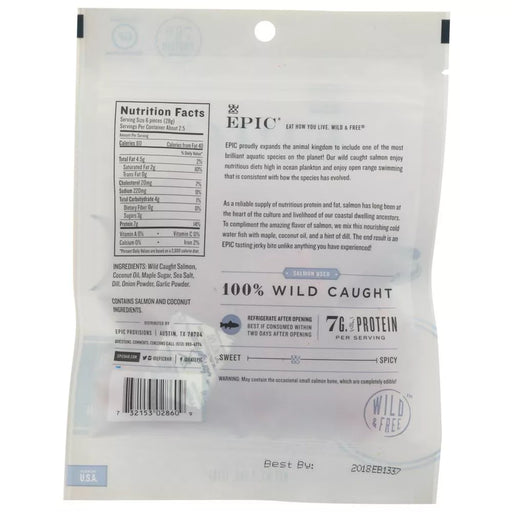 View full detailsEpic International Jerky Bites Salmon Maple Dill 2.5 oz