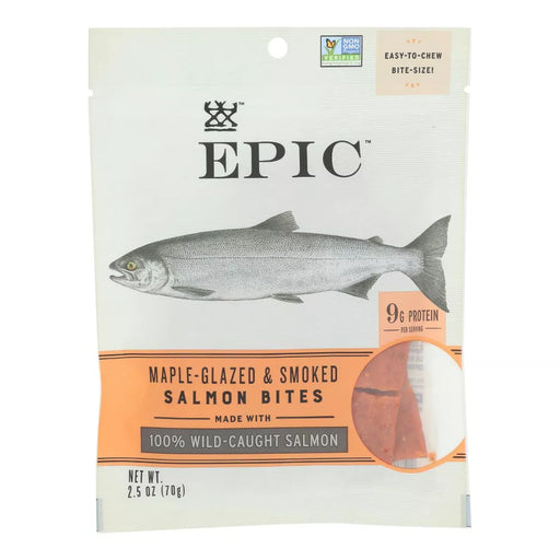 EpicDescriptionEpic Salmon Strip, Smoked Maple Salmon Fillet is a mouth-watering, convenient snack that tastes epic. It is made from gluten-free, wild-...