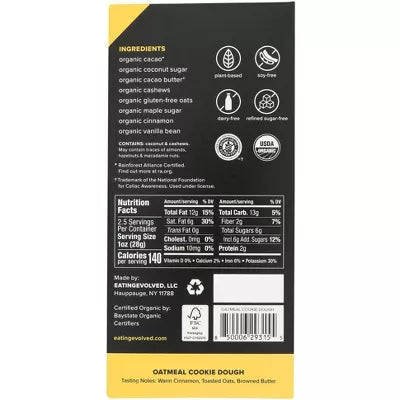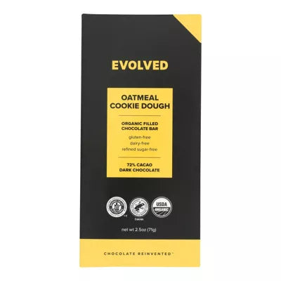 View full detailsEvolved 72% Cacao Dark Chocolate Bar Oatmeal Cookie Dough 2.5 oz