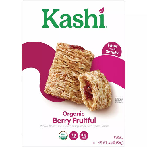 KashiDescriptionKashi Organic Berry Fruitful Wheat Biscuits are certified USDA Organic whole wheat biscuits with filling made from real fruit. Each serv...