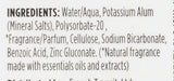 Water/aqua, Potassium Alum (Mineral Salts), Polysorbate-20, *fragrance/parfum, Cellulose, Sodium Bicarbonate, Benzoic Acid, Zinc Gluconate. Water/aqua, Potassium Alum (Mineral Salts), Polysorbate-20, *fragrance/parfum, Cellulose, Sodium Bicarbonate, Benzoic Acid, Zine Glutonale. (*natural Fragrance Made With Essentials Oils And Extracts)