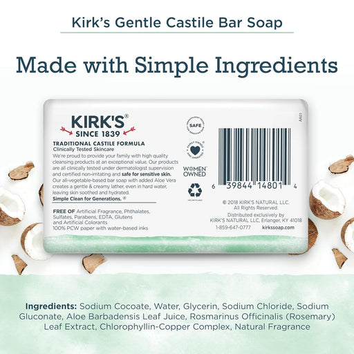 Kirk`sDescription Kirk's Original Coco with Aloe Vera Castile Soap Bars soothe and restore your skin's natural moisture. Our soap is completely cruelty-f...