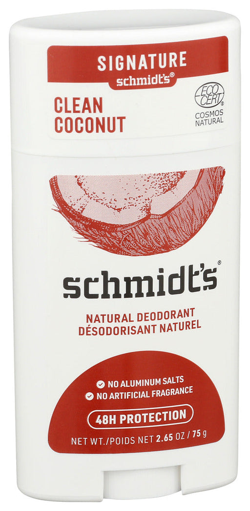 SchmidtsDescription Really Natural. Really Works. Schmidt's Natural Deodorant Stick Clean Coconut is an Ecocert Certified Natural deodorant for women and m...