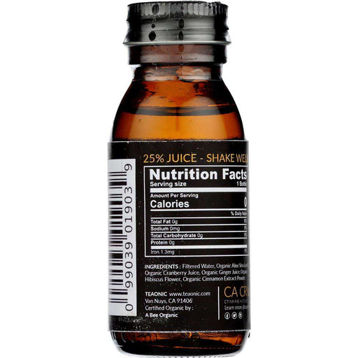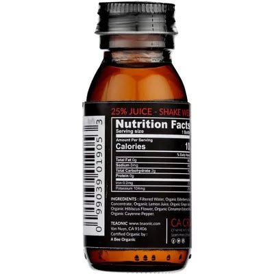 TeaonicDescription Features: Caffeine-free, unsweetened wellness shot concentrated from natural herbs; Elderberry juice blended with lemon, ginger, hibis...