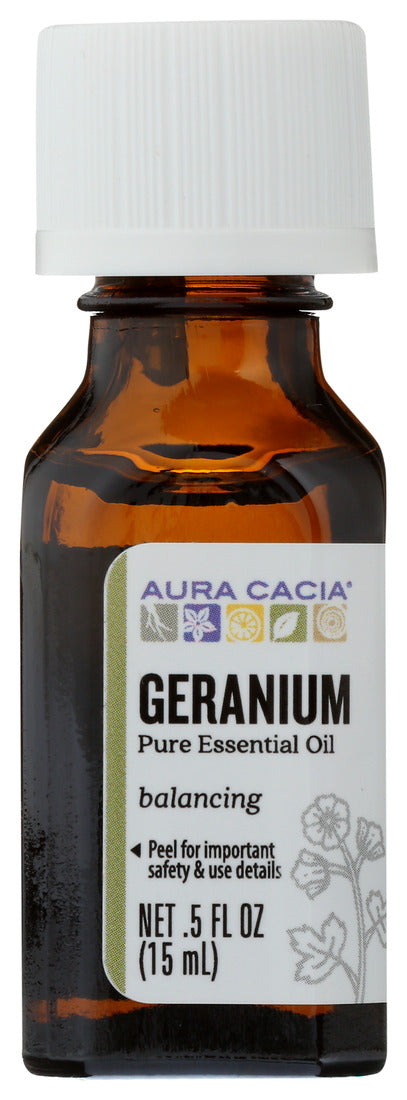 Aura CaciaDescription Aura Cacia Essential Oil, Geranium is a rose-like oil that has a comforting property. This stabilizing oil is perfect in an outdoor ble...