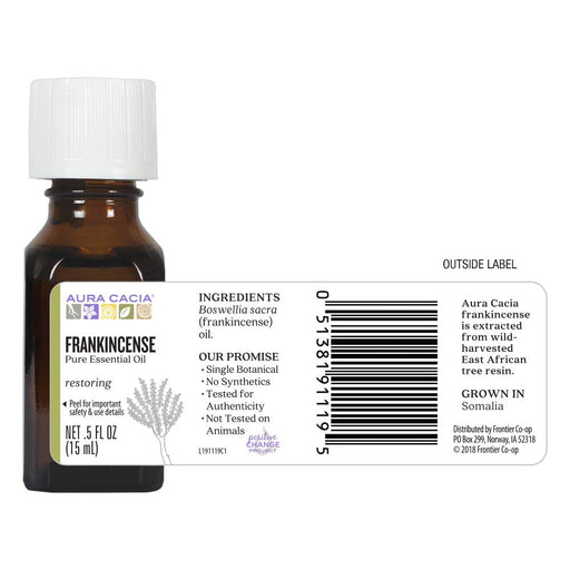 Aura CaciaDescription Aura Cacia Essential Oil, Frankincense is a sweet, balsamic oil that has a meditative property. This calming oil is perfect in a mist. ...