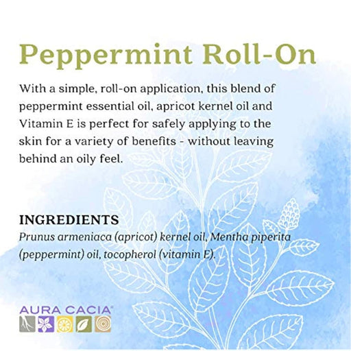 Aura CaciaDescription Aura Cacia essential oil blend cooling roll-on peppermint combines the therapeutic power of peppermint with skin-nourishing jojoba oil ...