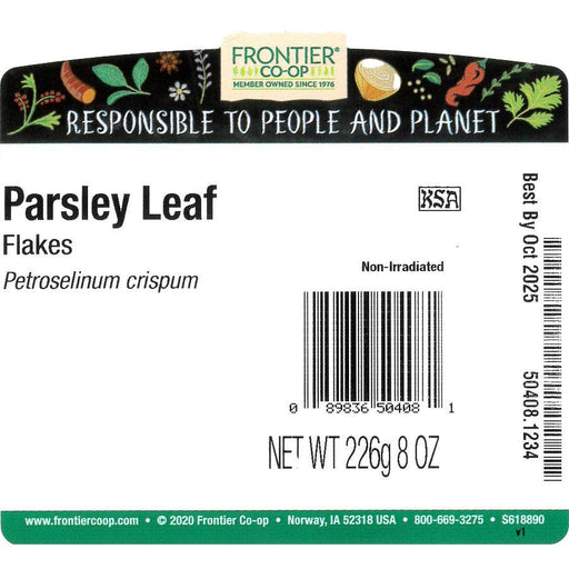 Frontier Nat Prod Co-opDescription Our parsley has a bright green color and a mild, fresh flavor that's used to flavor soups, vegetables, sauces, dressings, eggs and all ...