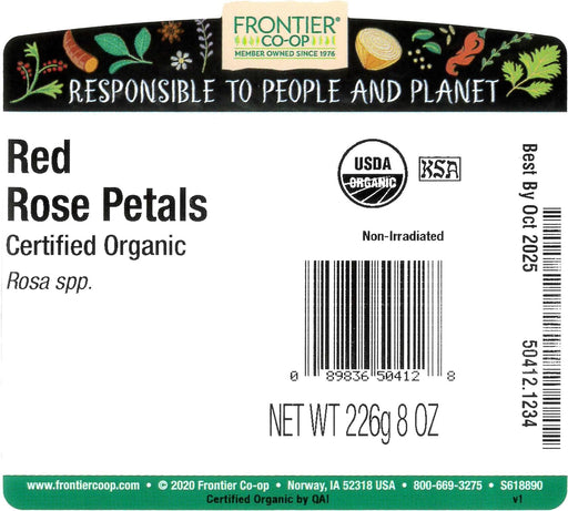 Frontier Nat Prod Co-opDescription ROSE PETALS - Frontier Co-op Certified Organic Red Rose Petals are prized for their delicate beauty and intoxicating fragrance. These p...