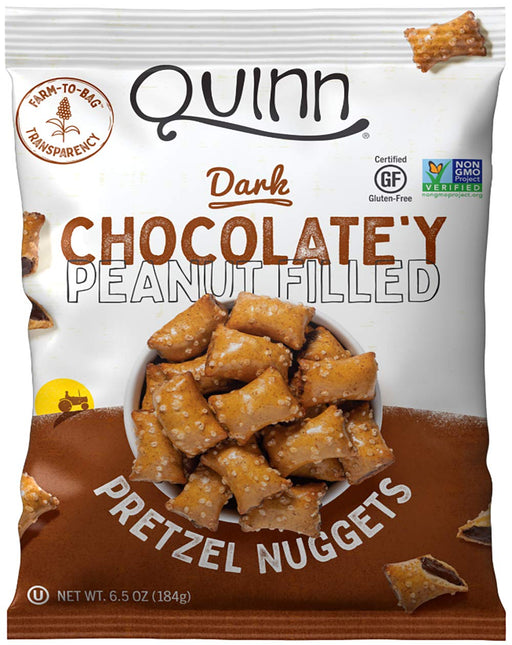 QuinnDescription Pretzel nuggets, creamy peanut butter filled, certified gluten-free, dairy free, vegan friendly, Non-GMO Project verified, Non-GMOProje...