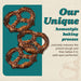 Unique Pretzel Bakery Extra Dark Pretzel Splits are a certified Kosher snack. With Pretzel Splits, the inside of the pretzel has been removed, leaving only the shell. This 11 oz. bag contains no trans fat, and the Pretzel Splits are crunchy and light in texture. See nutrition facts panel for allergens.