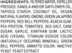 Filtered Water, Expeller Pressed Canola and/or Safflower Oil, Tapioca Starch, Coconut Oil, Vegan Natural Flavors, Onions, Green Jalapeno Peppers, Red Bell Peppers, Acacia Gum, Pea Protein, Tomatoes, Sea Salt, Cane Sugar, Garlic, Xanthan Gum, Lactic Acid (Vegan), Titanium Dioxide Color (Naturally Occurring Mineral), Green Bell Peppers, Annatto Color, Inactive Yeast, Yeast Extract.