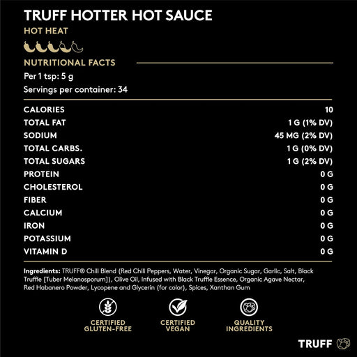TruffDescription TRUFF Black Truffle Hotter Sauce is for the Heat Seeking Flavor Connoisseur. Perfectly balanced and loaded with our iconic flavor, TRU...