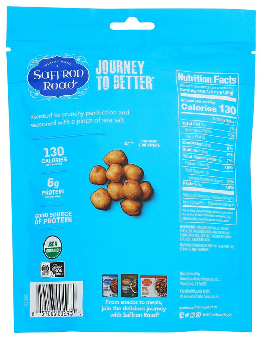 Saffron RoadDescription ROASTED TO CRUNCHY PERFECTION AND SEASONED WITH CAREFULLY BLENDED SPICES FROM AROUND THE WORLD Ingredients Organic Chickpeas; Expelle...