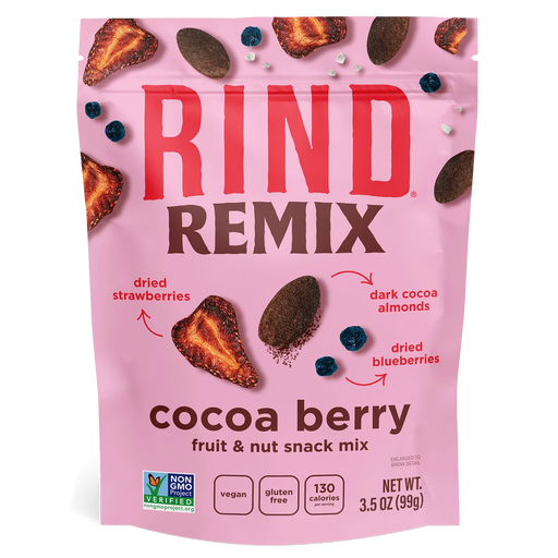 RindDescription Featuring dark cocoa dusted almonds, gently dried strawberries and blueberries plus a pinch of sea salt, this deliciously decadent mix ...