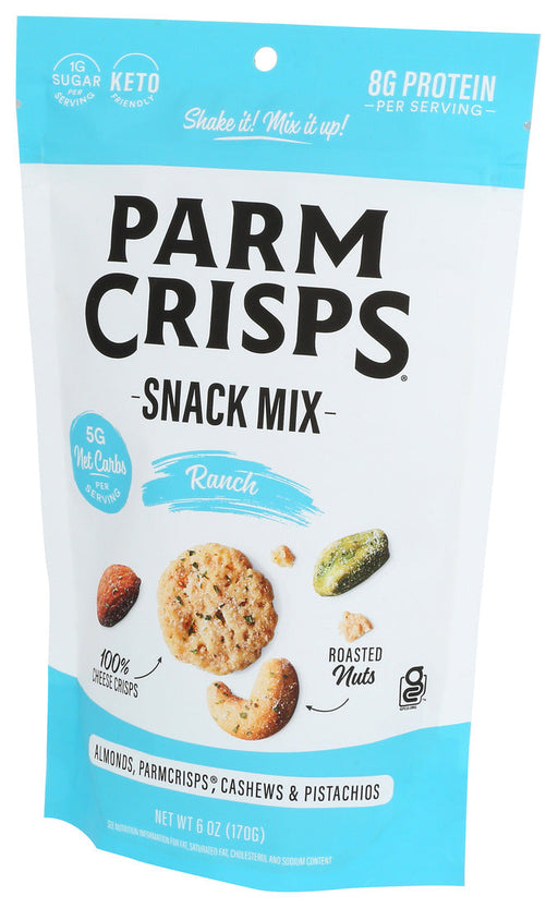 Parm CrispsDescription Always Keto Friendly. Dry Roasted Nuts. 100% Cheese Crisps. 2g Sugar. 5g Carbs. 10g Protein. Gluten Free. ParmCrisps Snack Mix Ranch de...