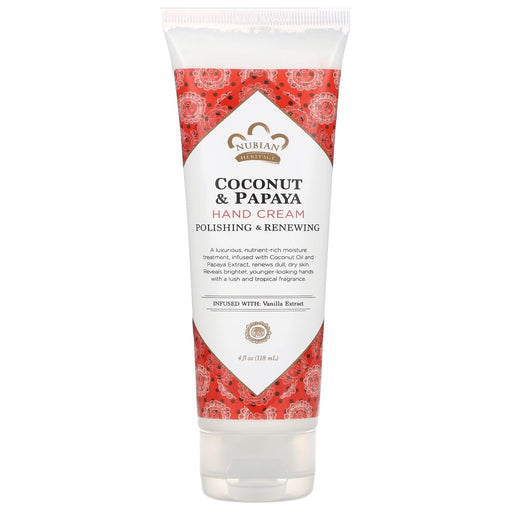 Nubian HeritageDescription This nutrient-rich hand cream is specially formulated with coconut oil and papaya extract revered in tropical communities for their moi...