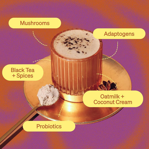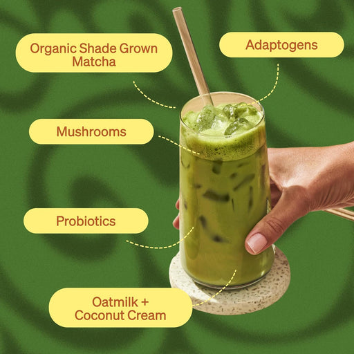 Description A delicious, instant matcha latte upgraded with probiotics and adaptogens like reishi mushrooms and ashwagandha to help boost mood, so...