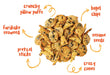 Corn Puffs (Refined Corn Powder, Cornstarch, Cassava Starch, Wheat Flour, Sugar, Salt, Baking Soda), Pretzel Sticks (Unbleached Enriched Wheat Flour [Flour, Niacin, Reduced Iron, Thiamine Mononitrate, Riboflavin, Folic Acid], Malt, Salt, Soybean Oil), Mini Bagel Chip (Wheat Flour, Yeast, Salt, Wheat Gluten, Cane Sugar, Malt Powder [Barley Malt Flour, Dextrose, Wheat Flour]), Tapioca Syrup, Bugle Shaped Snacks (Refined Corn Powder, Cornstarch, Cassava Starch, Wheat Flour, Sugar, Salt, Baking Soda), Unsalted Butter, Sugar, Soy Sauce (Water, Soybeans, Wheat, Salt), High Oleic Sunflower Oil, Toasted Sesame Seeds, Black Sesame Seeds, Dried Aosa Nori Seaweed Flakes, Spices, Shredded Toasted Nori Seaweed, Orange Peel Granules, Salt, Orange Powder, Soy Lecithin (an emulsifier).