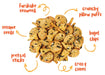 Corn Puffs (Refined Corn Powder, Cornstarch, Cassava Starch, Wheat Flour, Sugar, Salt, Baking Soda), Pretzel Sticks (Unbleached Enriched Wheat Flour [Flour, Niacin, Reduced Iron, Thiamine Mononitrate, Riboflavin, Folic Acid], Malt, Salt, Soybean Oil), Mini Bagel Chip (Wheat Flour, Yeast, Salt, Wheat Gluten, Cane Sugar, Malt Powder [Barley Malt Flour, Dextrose, Wheat Flour]), Tapioca Syrup, Bugle Shaped Snacks (Refined Corn Powder, Cornstarch, Cassava Starch, Wheat Flour, Sugar, Salt, Baking Soda), Unsalted Butter, Sugar, Soy Sauce (Water, Soybeans, Wheat, Salt), High Oleic Sunflower Oil, Toasted Sesame Seeds, Dried Aosa Nori Seaweed Flakes, Shredded Toasted Nori Seaweed, Natural Flavors, Salt, Liquid Butter Concentrate (Soybean Oil, Natural Flavor, Turmeric and Annatto [for color]), Soy Lecithin (an emulsifier), Spice.